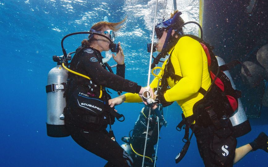 - Once you are in the water, the instructor will give you a demonstration of the basic dive skills, proper breathing techniques and hand signals to communicate underwater.